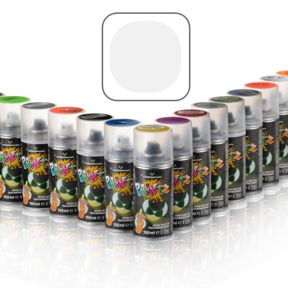 Gebruiksklare, dekkende verf voor polycarbonaat carrosserieën Halfglanzende afwerking, geschikt voor gebruik aan de binnenzijde van een polycarbonaat carrosserie Sneldrogend Bestand tegen nitrobrandstof