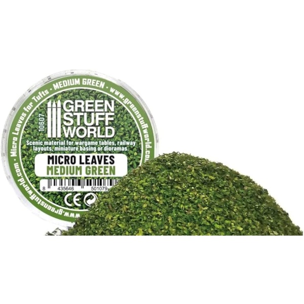 Micro Leaves is een zeer fijn gesneden, speciaal flock materiaal. Ze zijn ontworpen om een bedrieglijk echte, bladachtige vorm te hebben.
